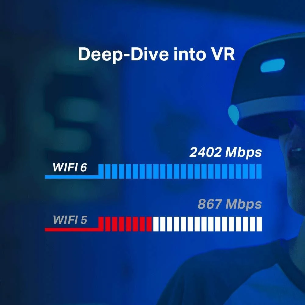 – Wi-Fi 6 comes with 1024-QAM and 160 MHz bandwidth, for powerful, continuous Wi-Fi. Bandwidth-intensive applications like VR demand high speeds, which Wi-Fi 6 delivers—3× faster than Wi-Fi 5. Just insert Archer TX50E into your PC for fully immersive VR experiences.