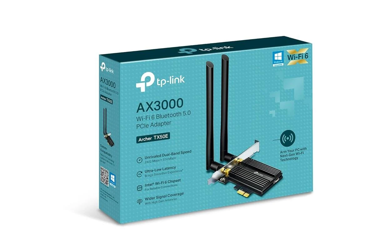 TP-Link Archer TX50E AX3000 Wi-Fi 6 Bluetooth 5.2 PCIe Adapter for PC with Heat Sink, MU-MIMO, Ultra-Low Latency, Supports Windows 11/10 (64bit) Only, Two High-Gain Dual Band Antennas is designed for buyers who want dependable performance with a clean upgrade path.
