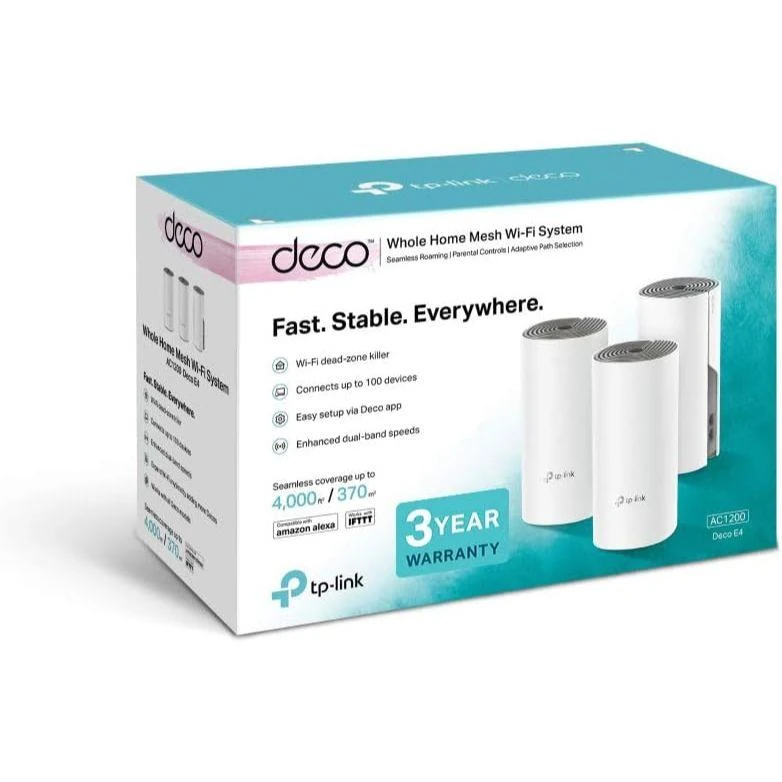 TP-Link Deco E4 Whole Home Mesh Wi-Fi System, Seamless and Speedy (AC1200) for Large Home, Work with Amazon Echo/Alexa, Router and WiFi Booster Replacement, Parent Control, Pack of 3 is designed for buyers who want dependable performance with a clean upgrade path.