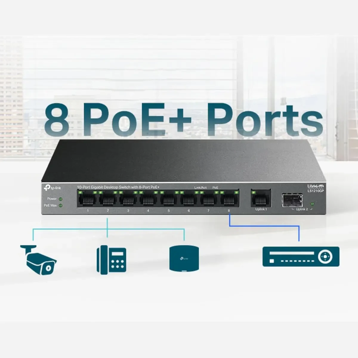 TP-Link LS1210GP 10-Port Gigabit Desktop with 8-Port PoE+ Switch, 1x Gigabit SFP Port Network Switch, 61 W PoE Budget, 30 W Output, Up to 250m Transmission, Traffic Separation, Plug & Play is designed for buyers who want dependable performance with a clean upgrade path.