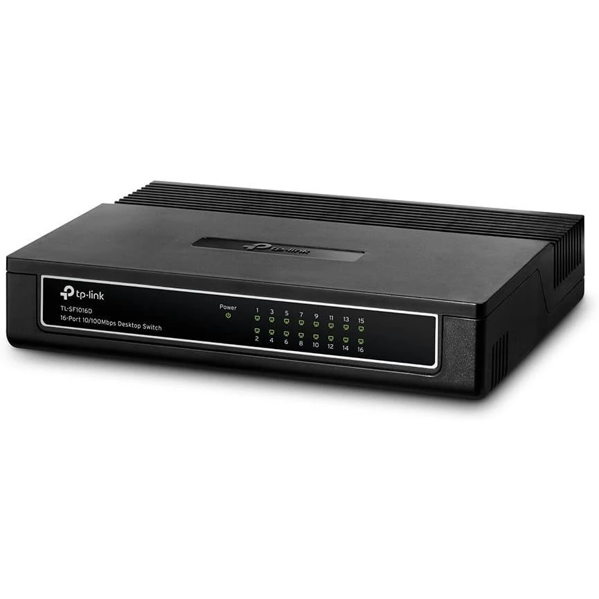– This new generation TL-SF1016D Fast Ethernet Switch features the latest innovative energy-efficient technologies that can greatly expand your network capacity with much less power. It automatically adjusts power consumption according to the link status and cable length to limit the carbon footprint of your network.