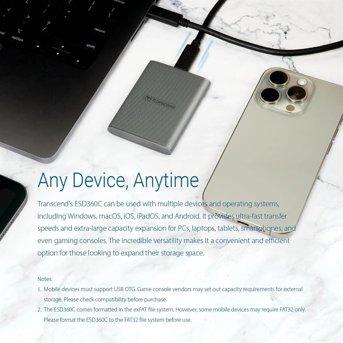Transcend ESD360C 4TB External SSD, USB 3.2 Gen 2 (20Gbps), Up to 2,000MB/s, Portable SSD with 2-in-1 USB-C Cable, for Steam Deck, ROG Ally, MSI Claw, Windows&Mac, iPhone, iPad, Android, PS5, Xbox, Smart TV is designed for buyers who want dependable performance with a clean upgrade path.