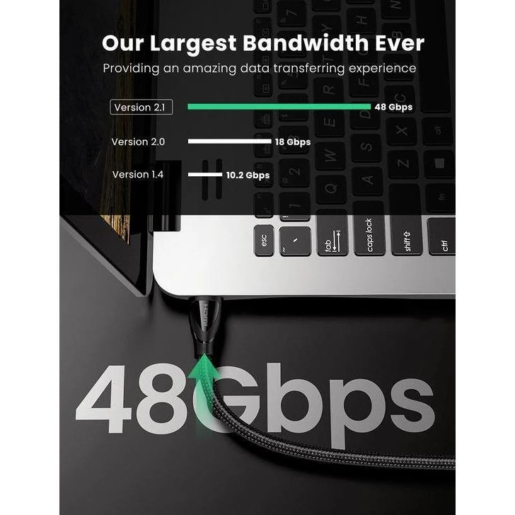 – This 8k hdmi 2.1 version cable supports bandwidth up to 48Gbps, high-speed transmission without signal loss, much faster than hdmi 2.0 and hdmi 1.4.