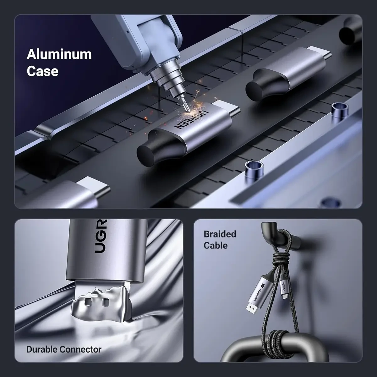 Upgraded Material: Features a braided nylon cable for durability and strain relief. Premium aluminum alloy case for heat dissipation. High-quality connectors ensure secure, high-speed data transmission. Solid construction for durability, with thicker copper wire for maximum conductivity and minimal signal loss. Includes an additional Velcro tie for travel.