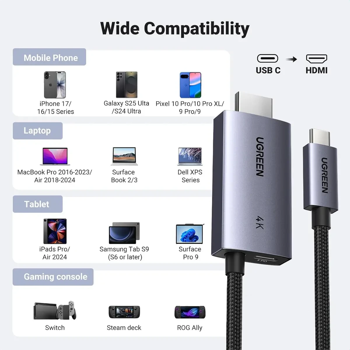 Ugreen USB-C to HDMI Cable with 100W PD Fast Charging Adapter 4K@60Hz 2-in-1 Thunderbolt Unidirectional Type C to HDMI Compatible iPhone 17 Pro Max, SteamDeck, MacBook, iPad, Galaxy S25, XPS, 2m is designed for buyers who want dependable performance with a clean upgrade path.