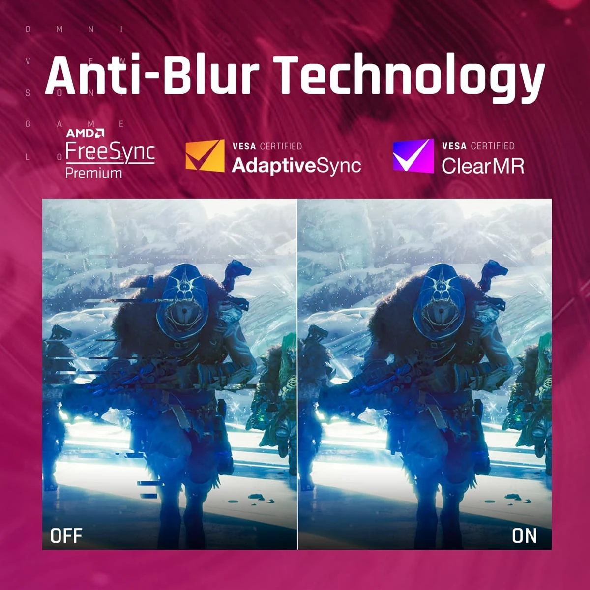 – With great power comes great gameplay. You need to work, but there’s more to life than that. With the rare triple certification of AMD FreeSync Premium, VESA Adaptive Sync, and VESA ClearMR technology you’re equipped with anti-tearing and anti-blur technology, so you can enjoy lag-free action and sharp visuals, even in fast-paced games. This monitor has the power that gives you the edge, all day, all night.