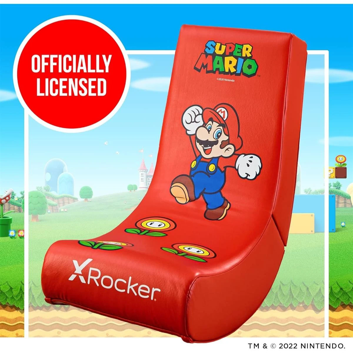 – VIDEO GAMING CHAIR – Official Nintendo Licensed Super Mario Bros collaboration with X Rocker, that is tested and engineered for high quality gaming experience that Nintendo fans can enjoy from their game room, bedroom or den