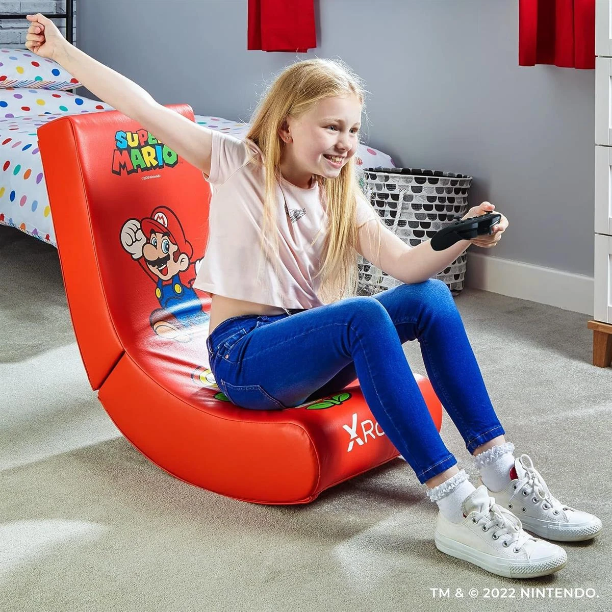SUPER MARIO CHARACTERS – Have a party, movie night or gaming session with one or all of the collectible floor rocker chairs: Peach pink, Super Mario red, Luigi Blue, Bowser Green, or Yoshi Yellow. It’s the perfect gift for young gamers!