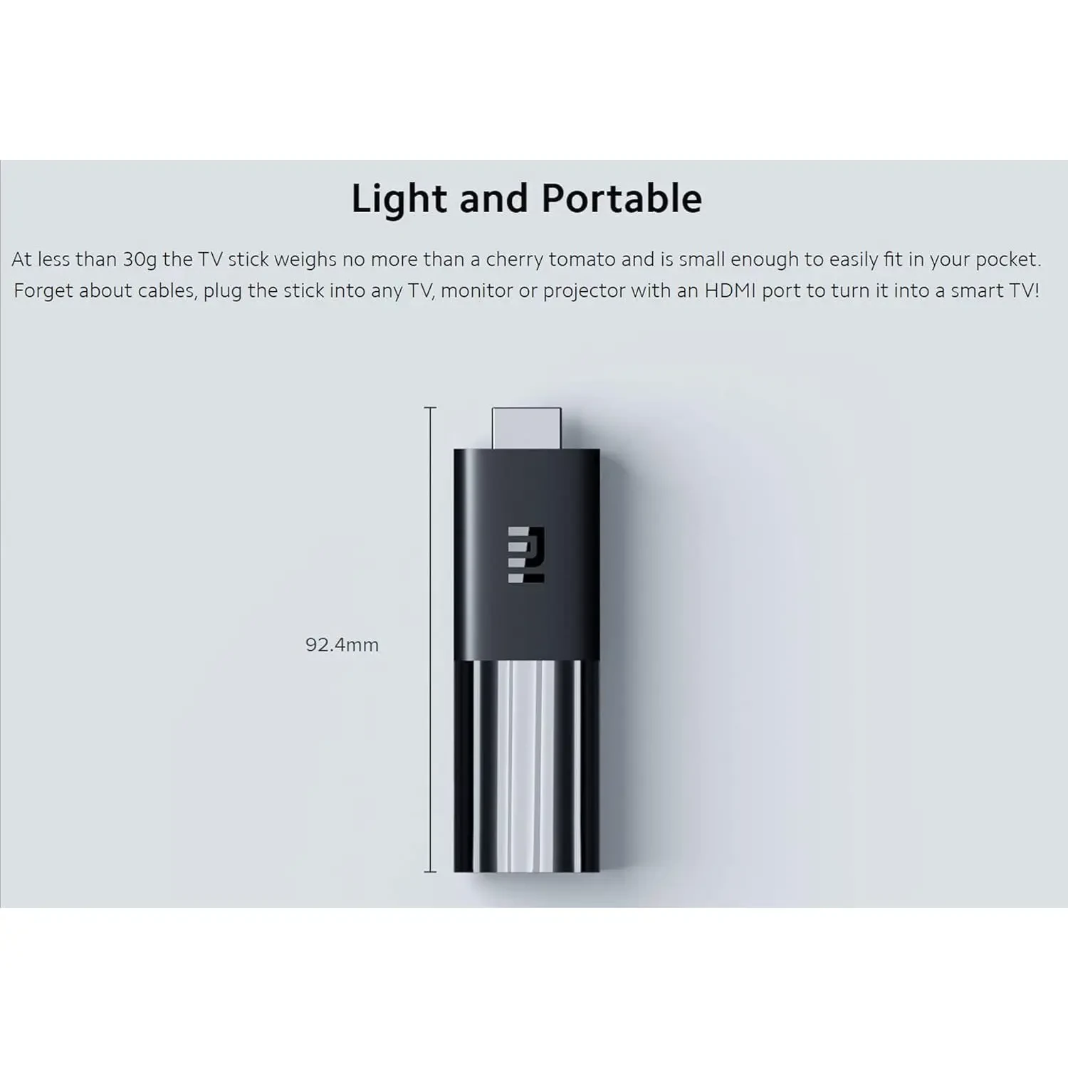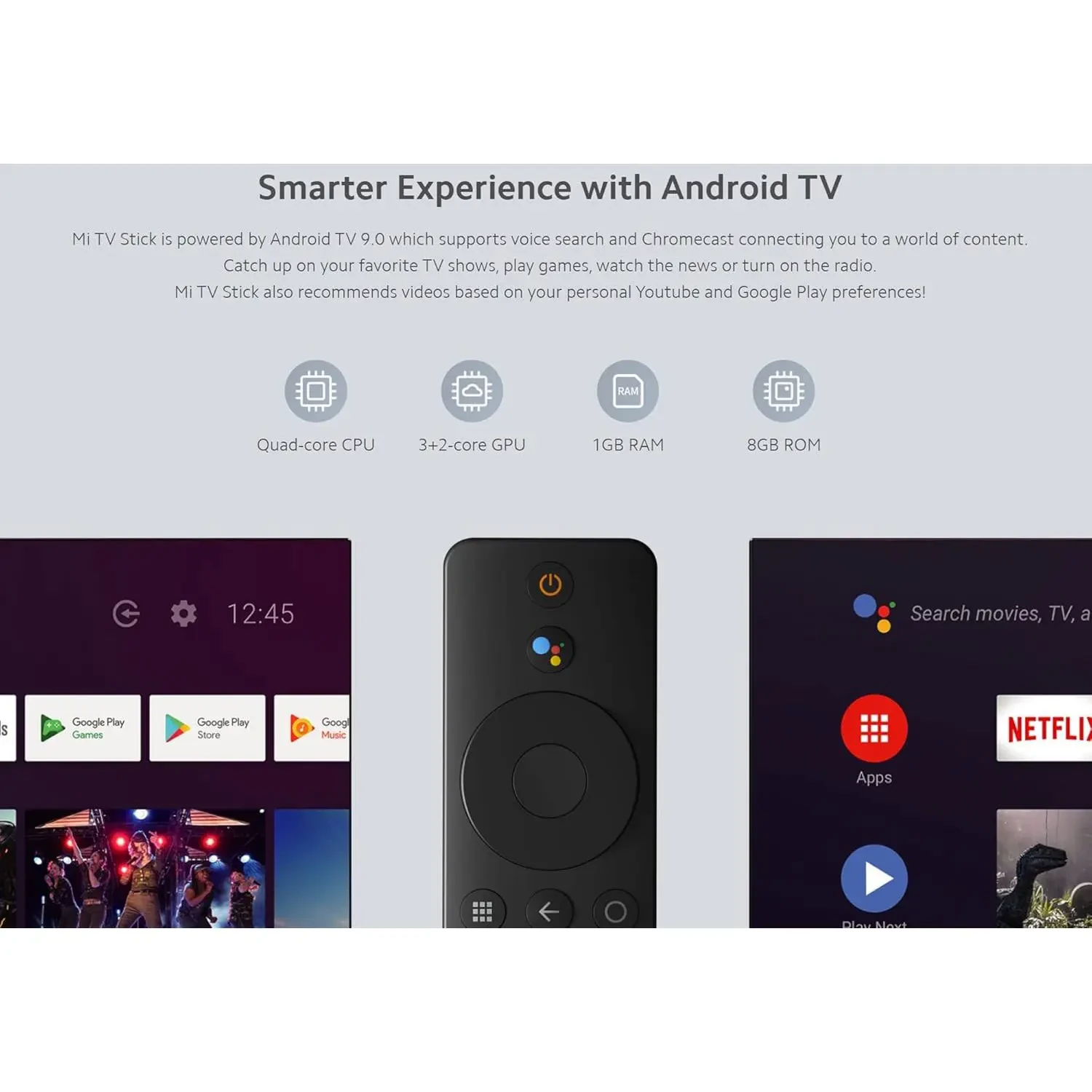 – Mi TV Stick is powered by Android TV 9.0 which supports voice search and Chromecast connecting you to a world of content.